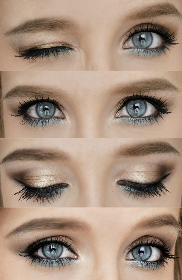 Посмотрите небольшое руководство по макияжу для голубых глаз, пошаговое фото: