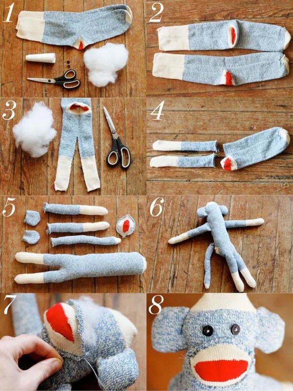 Игрушки, сшитые из старых носков, пользуются большой популярностью. Ведь такой материал найдется в каждом доме. Чтобы сшить обезьянку из носков, нужно найти яркие полосатые носочки или гольфы. Кроме этого, понадобятся: